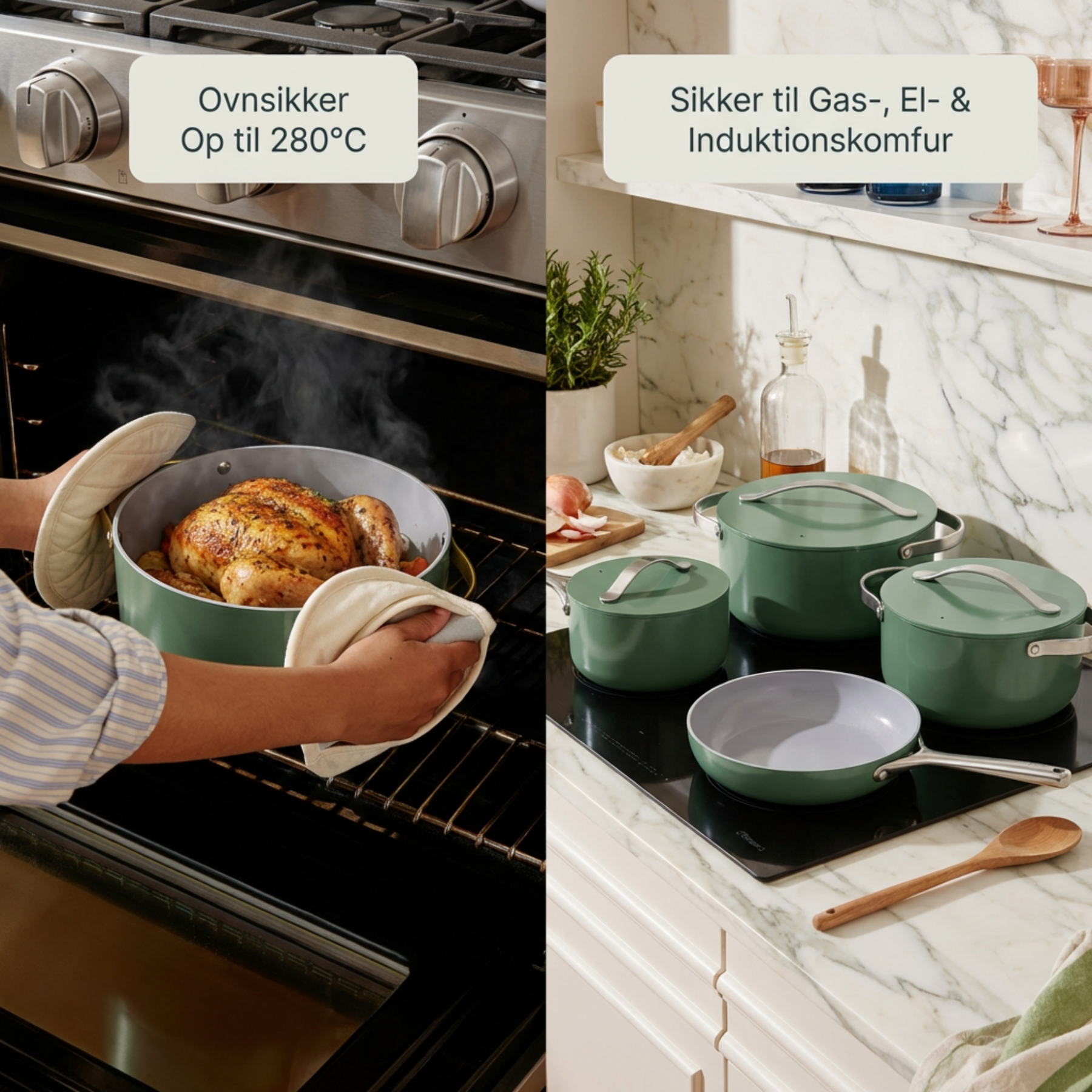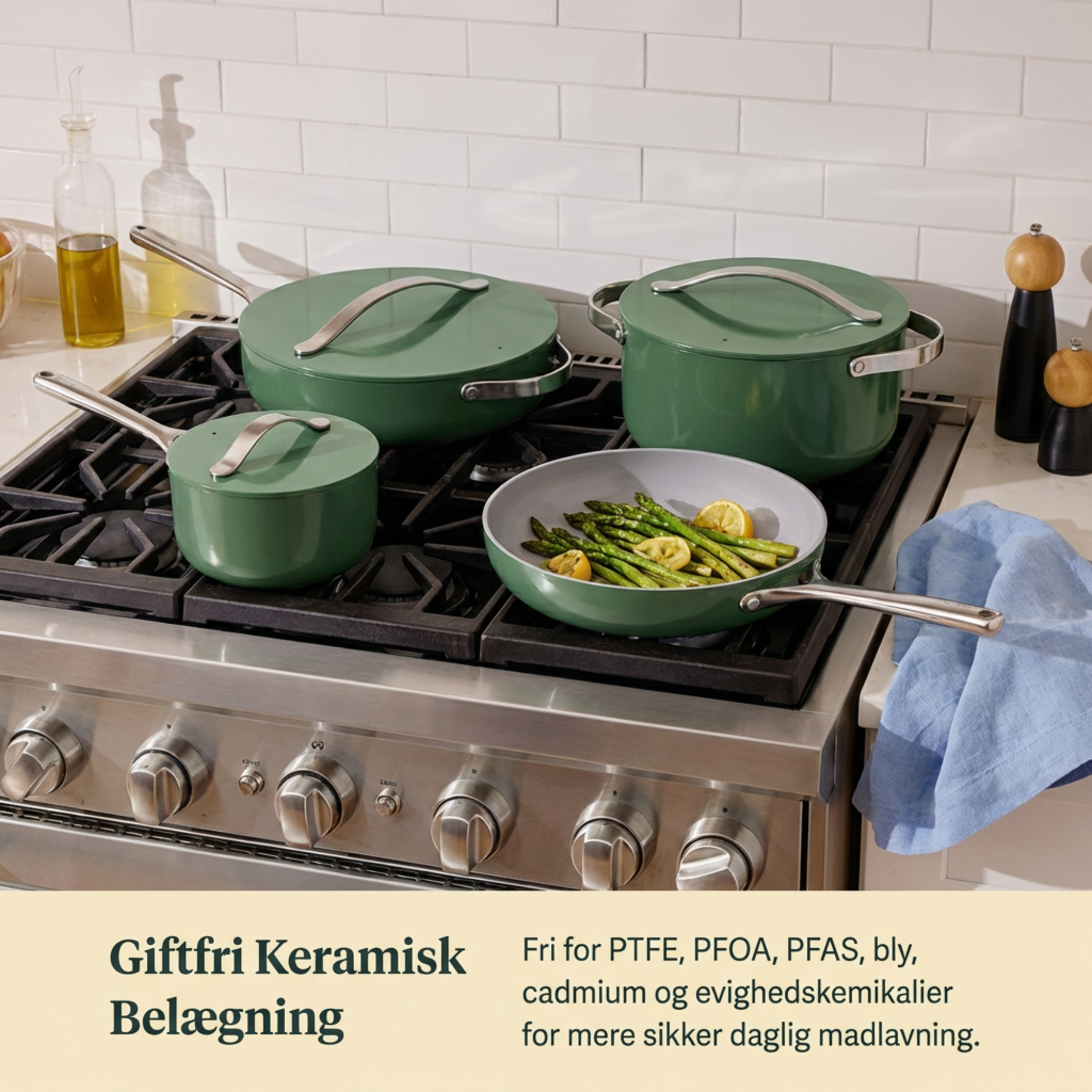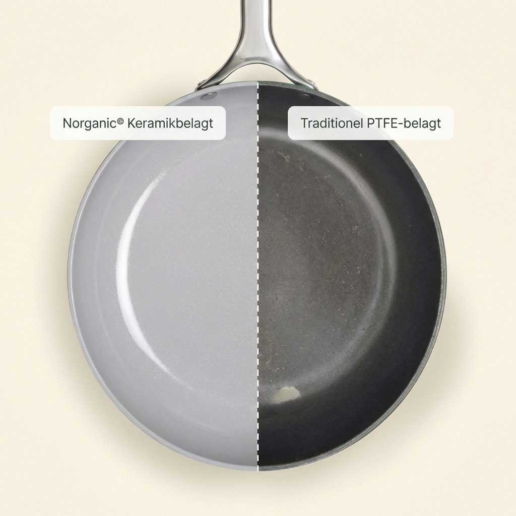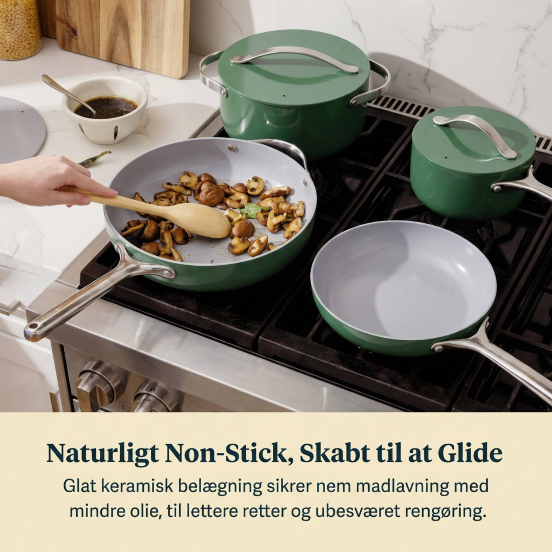 Keramisk non-stick uden PFAS, PTFE eller skadelige kemikalier. Skabt til dem der ikke vil gå på kompromis i køkkenet.