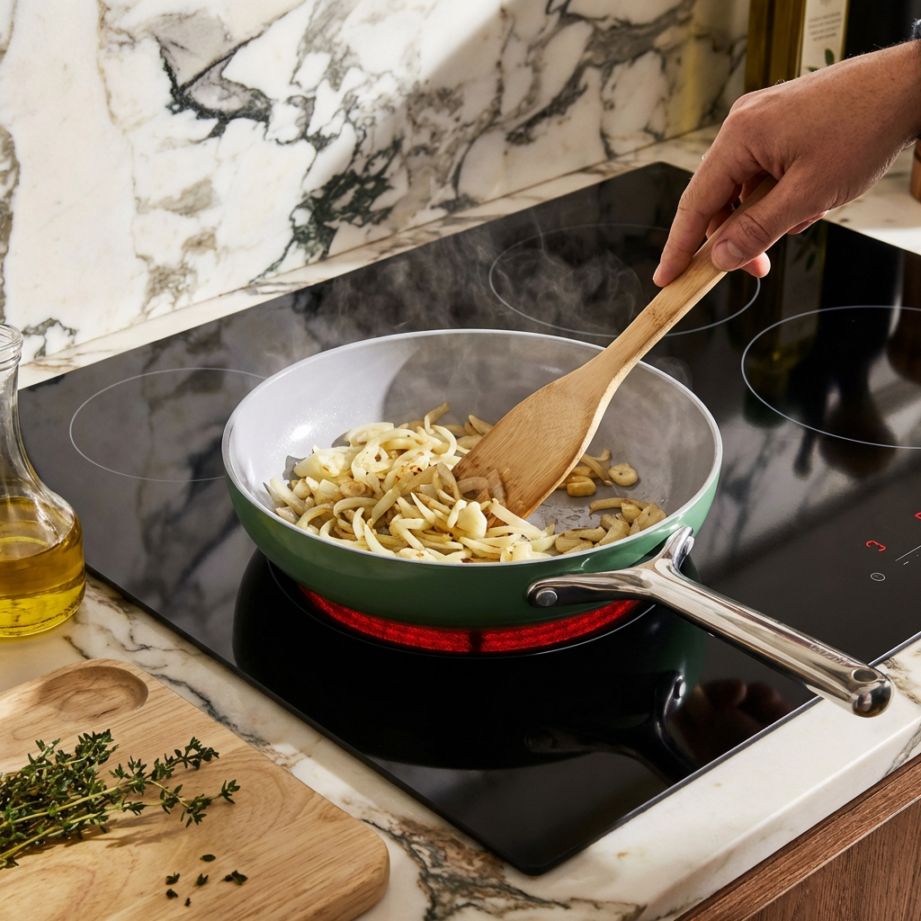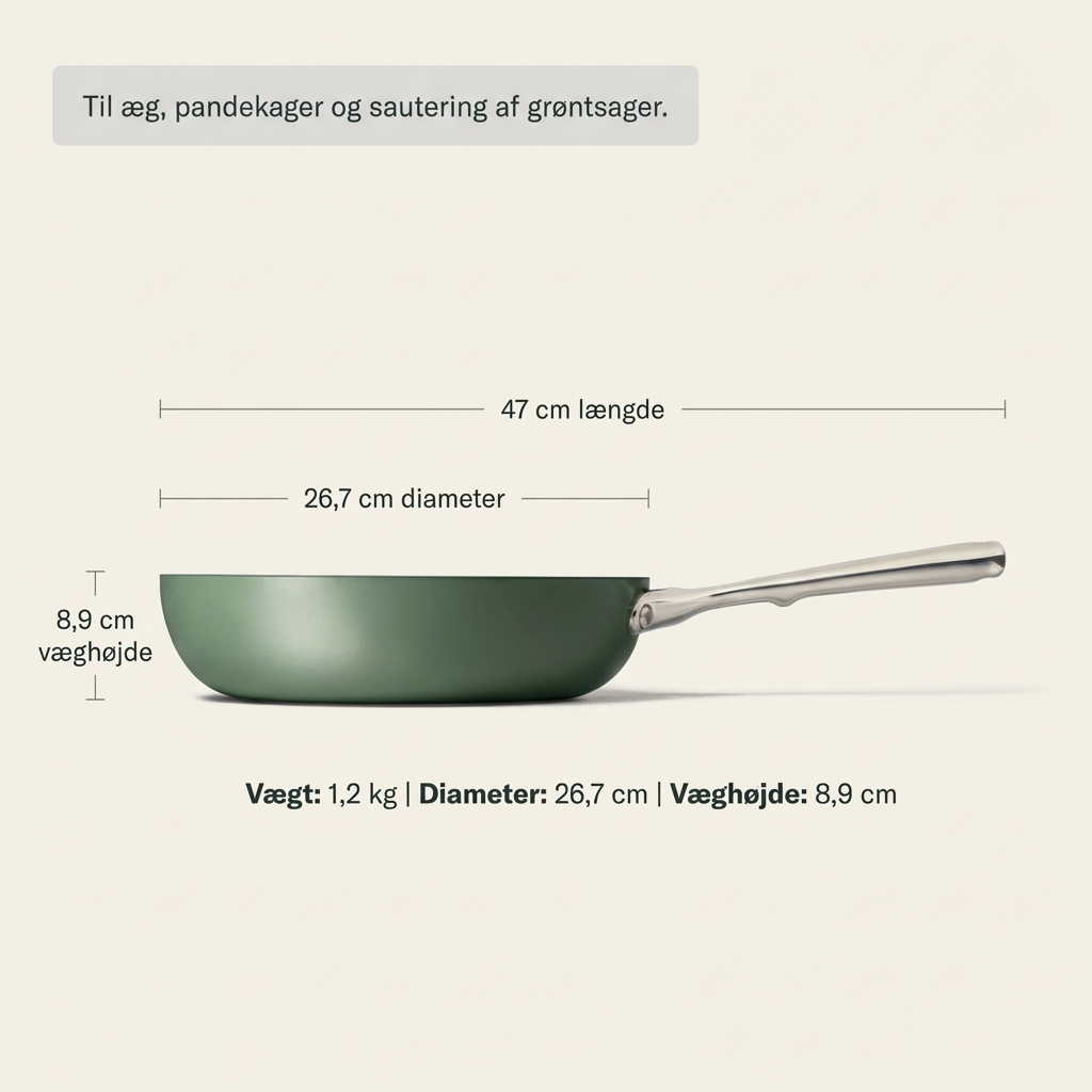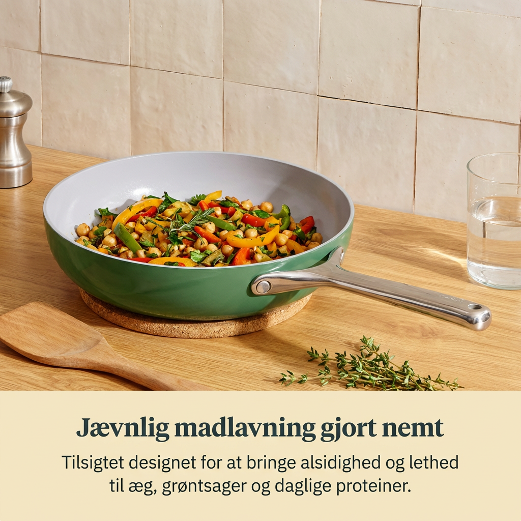Keramisk non-stick uden PFAS, PTFE eller skadelige kemikalier. Skabt til dem der ikke vil gå på kompromis i køkkenet.